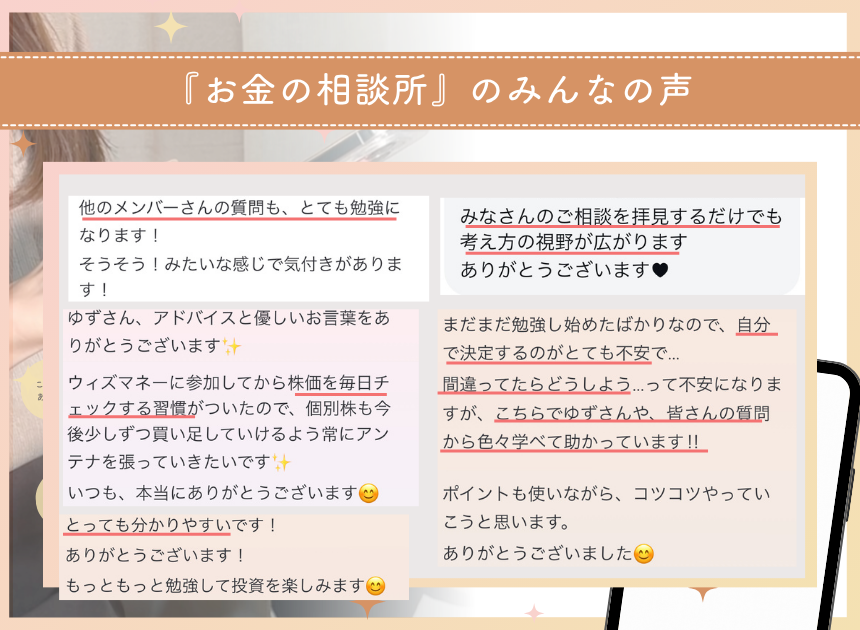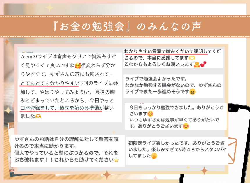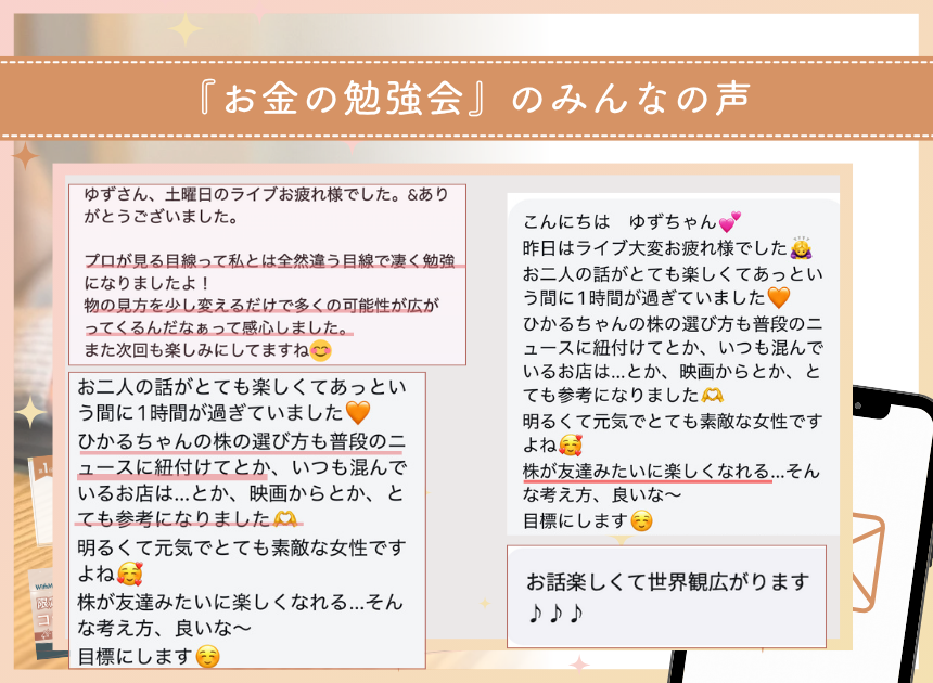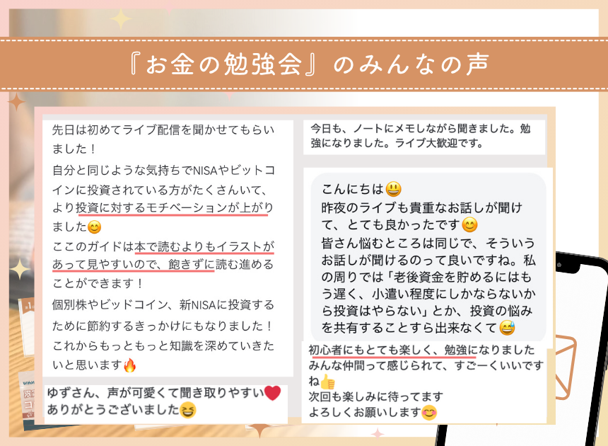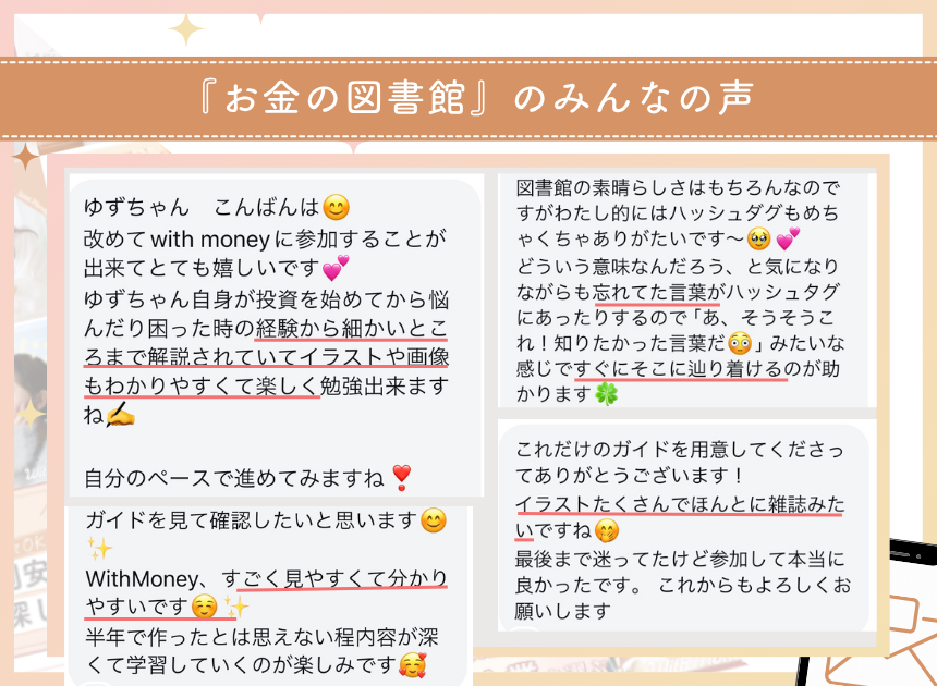 お金を増やす上で、大切な知識を一緒に学べる『お金の勉強会』のみんなの口コミです✨