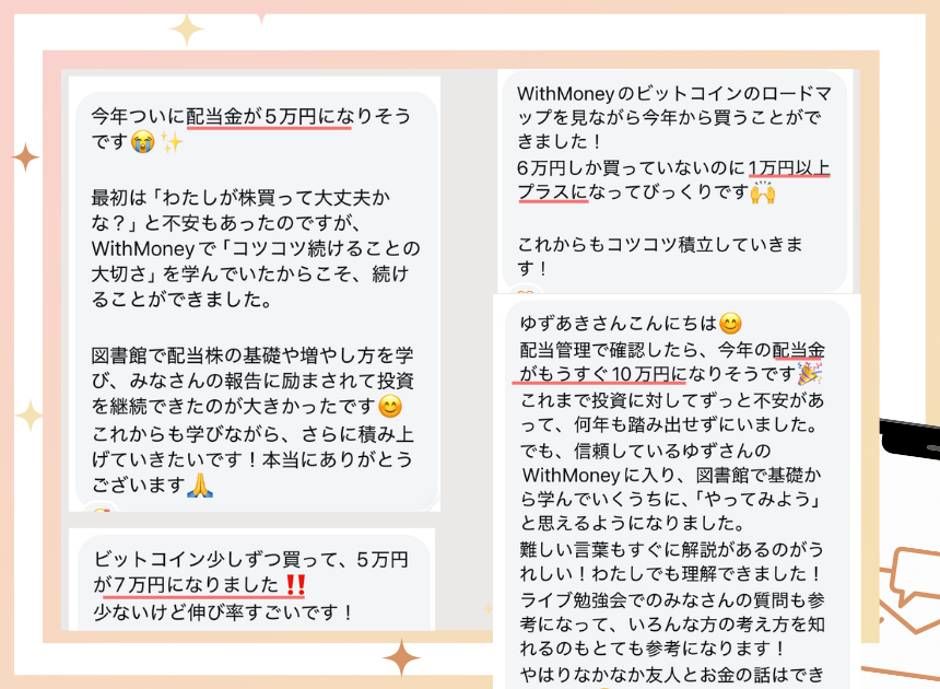 実際にWithMoneyで投資を始めた人や、増やせた人の口コミだよ!