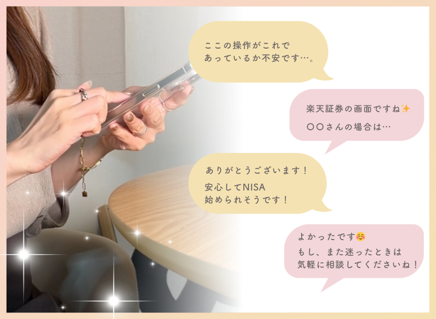 過去の私のように「1人で投資を進められるか不安…」と感じる人もいるよね。