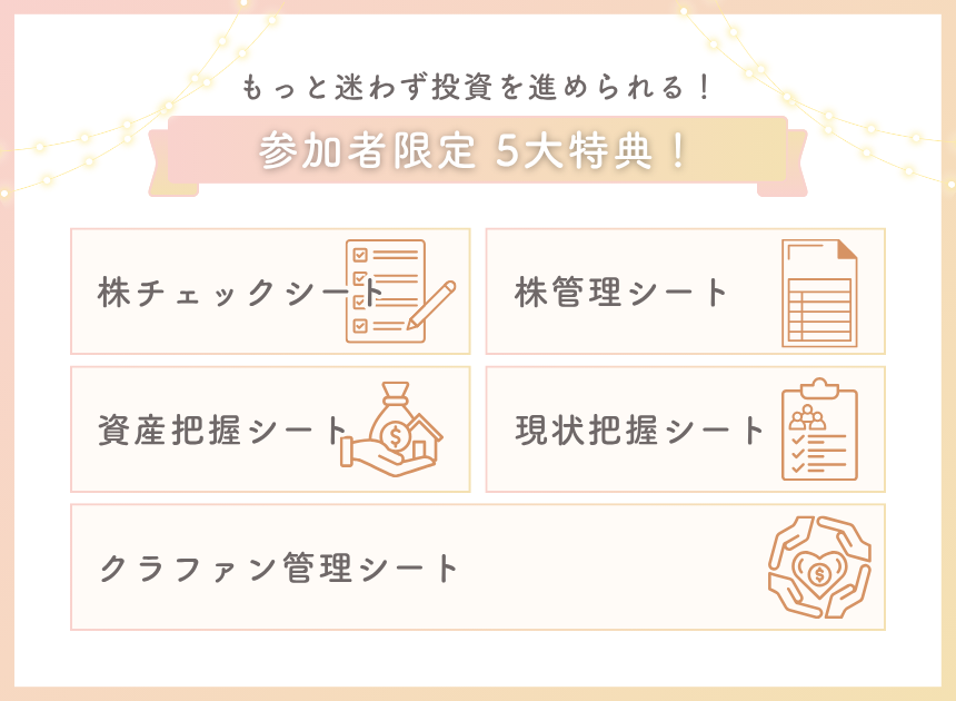 すぐに使える投資をさらにスムーズにする、特別な5大特典をプレゼント🎁✨