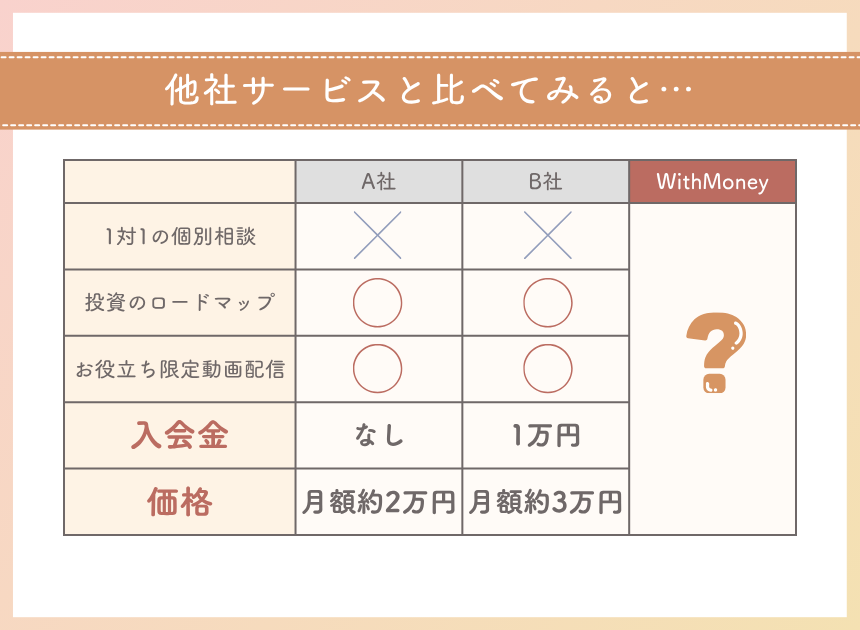 もし価格が原因でWithMoneyに入ることや、投資を諦めてしまったら…