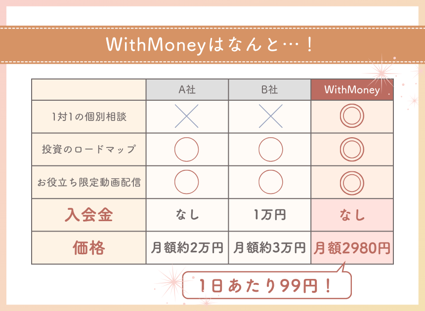 WithMoneyはこれまでの投資スクールの常識を変えるような価格にすることにしました!