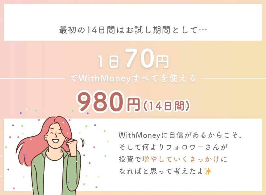 そしてサプライズのお試し価格は、全力で作りあげたWithMoneyに自信があるからこそ実現できたよ✨