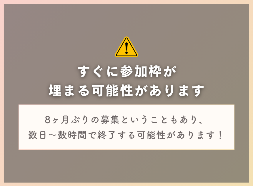 そして、約8ヶ月ぶりの募集となるこのタイミングで…